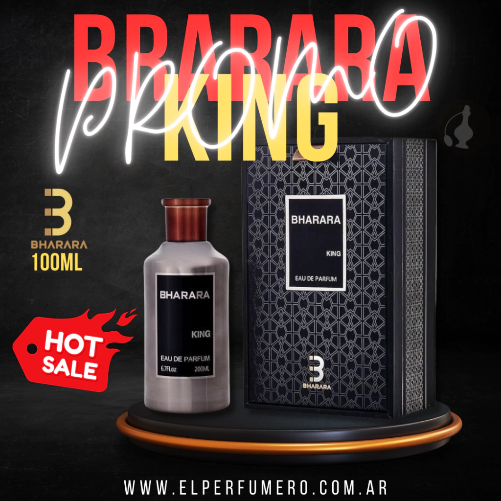 Bharara King es una fragancia masculina de carácter distintivo, inspirada en la opulencia árabe. Su pirámide olfativa se abre con notas vibrantes de bergamota, naranja y limón que despiertan los sentidos. En su corazón, un acorde cálido de ámbar, especias orientales y frutos aporta profundidad y magnetismo. El fondo, poderoso y duradero, revela maderas exóticas, vainilla y almizcle, creando una estela elegante y envolvente.